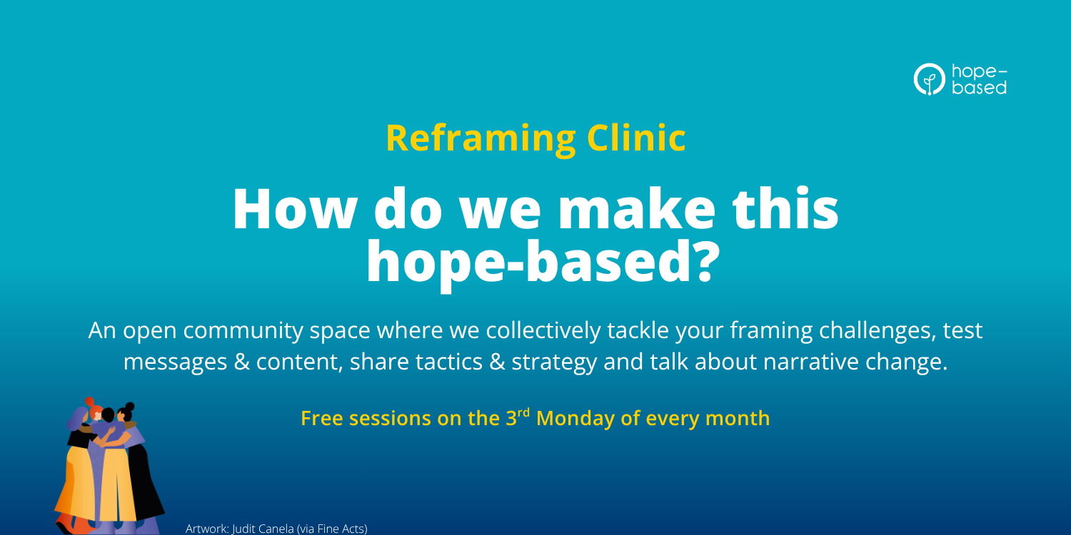Hope-based reframing clinics are a free space to grow hope into action. We run these to help you reframe and test your messages, content and strategies.